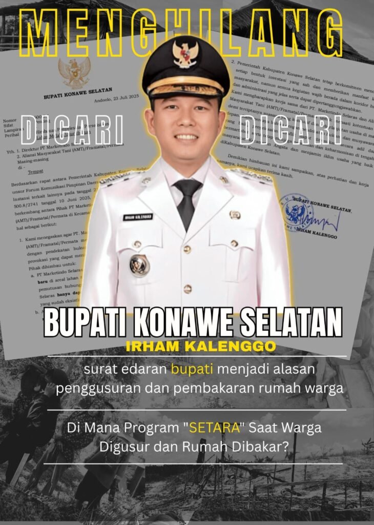 Wahana Lingkungan Hidup Indonesia (WALHI) Sulawesi Tenggara menilai narasi yang dikemukakan oleh Pemerintah Kabupaten Konawe Selatan, yang menyebut Surat Imbauan Bupati Nomor 600.3.1 sebagai bentuk “moderasi konflik”, justru mengaburkan akar masalah konflik agraria yang sesungguhnya di Kecamatan Angata.